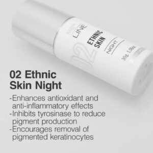 Night-time depigmenting emulsion for the correction of melasma in dark skin. Phototypes IV-VI. Improves and delays the appearance of skin pigmentation. Inhibits expression of the tyrosinase enzyme, reducing melanin synthesis. This formula reduces transcription of the mRNA required for tyrosinase synthesis. This effectively inhibits melanin synthesis. It also blocks the release of melanosomes and lightens dark pigments, evening out skin tone.